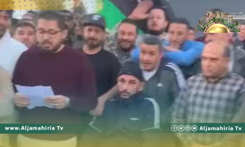 تظاهر أفراد من القوة المشتركة في ساحة البريد بمصراته، ورافقهم المليشياوي فتحي مخلوف ‏الشهير بقضية تهريب الذهب من مطار مصراتة.‏