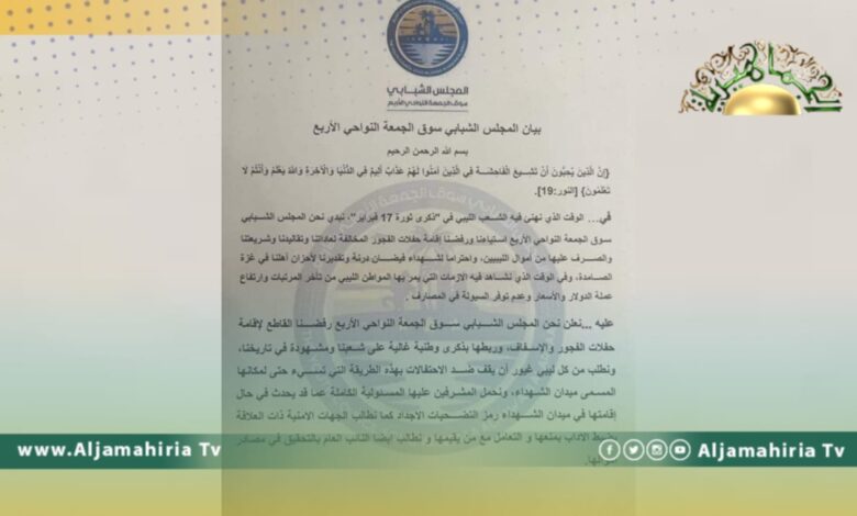 المجلس الشبابي سوق الجمعة يعلن رفضه إقامة الاحتفالات بنكبة فبراير بسبب أزمات المواطن الليبي