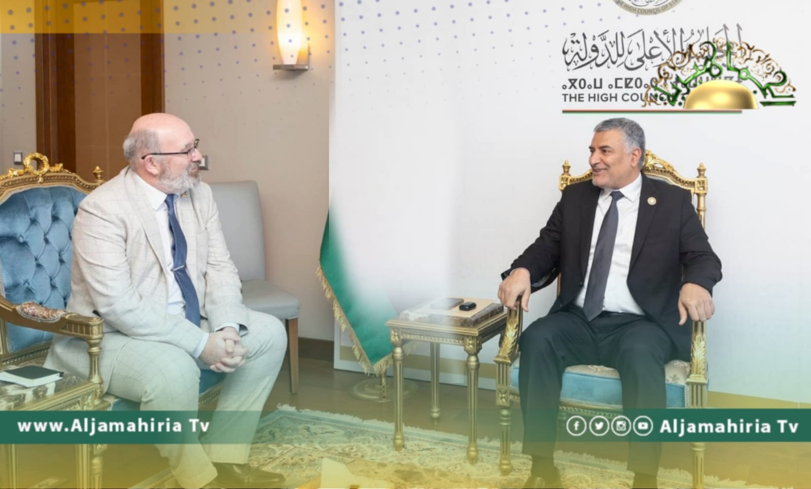 بحث رئيس مجلس الدولة الإخواني، محمد تكالة مع المبعوث البريطاني، المساعي التي يبذلها المبعوث الأممي لمعالجة الانسداد السياسي.