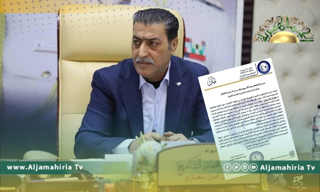 وأكد مدير أمن بنغازي، بحسب بيان للمديرية على صفحتها، طالعته الجماهيرية، على البيانات الصادرة من رئيس حكومة الشرق أسامة حماد، والتي تطمئن فيه الجميع أن جميع فئات العملة قابلة للتداول، وفقا للتشريعات النافذة وقانون المصارف، واي قرار بشأن سحبها واصدارها يسبقه تنبيه وفترة زمنية لاتقل عن 6 أشهر حتى سحبها نهائيا.