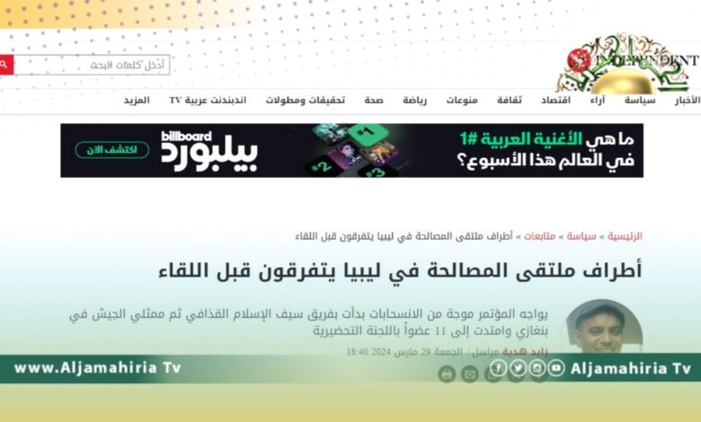 اندبندنت عربية: مؤتمر المصالحة مهدد بالفشل بعد إنسحاب فريق الدكتور سيف الإسلام