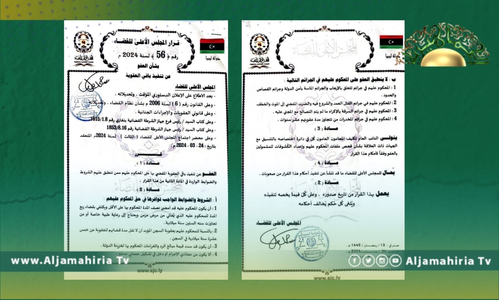 قرر المجلس الأعلى للقضاء في اجتماعه الثالث لسنة 2024م العفو عن تنفيذ باقي العقوبة المقضي بها على المحكوم عليهم ممن تنطبق عليهم الشروط