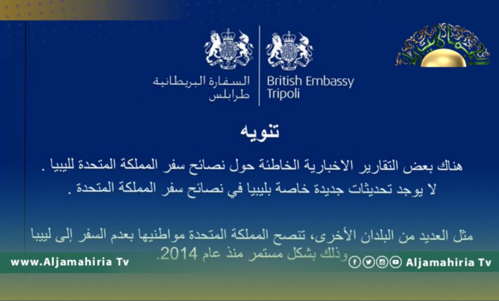 علق مواطنون، على نفي السفارة البريطانية لدى ليبيا صدور تحديثات بخصوص السفر اليها، والزعم أن هناك بعض التقارير الإخبارية الخاطئة حول نصائح سفر المملكة المتحدة لليبيا، مؤكدة: إنه لا يوجد تحديثات جديدة خاصة بليبيا في نصائح سفر المملكة المتحدة، وأن بريطانيا، مثل العديد من البلدان الأخرى، تنصح المملكة المتحدة مواطنيها بعدم السفر إلى لييبا وذلك بشكل مستمر منذ عام 2014