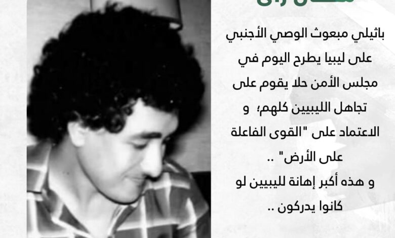 لو كان باثيلي نزيهاً يريد حلا لطرح حلا يقوم على استبعاد القوى التي وصفها ما دام قد عرفها و حددها و اعتمد على الليبيين أصحاب الحق الأصلاء و لو باختيار مندوبين عن الدوائر الانتخابية ال 13 اختصارا للوقت أو اختيارهم من خلال انتخابات محلية في كل دائرة؛ لكن باثيلي ينفذ مخطط الأمم المتحدة الذي يقوم على عدم الحل …