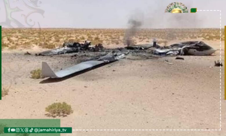 وقال النشطاء، إن هذه صورة لمسيرة أمريكية تحطمت بعد خروجها عن مسارها، أثناء قيامها بجولة استطلاعية بالقرب من مدينة الزنتان.
