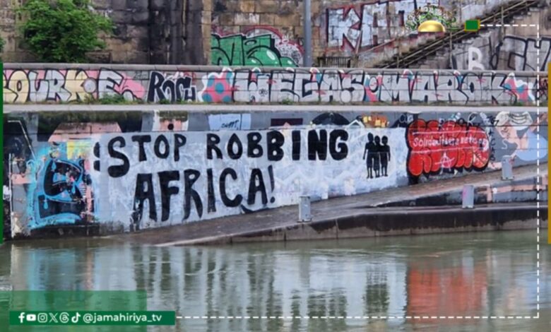 وطالبت الكتابات التي دونت على الجدران في الشوارع بفيينا الاستعمارية الدول الغربية بالتوقف عن استغلال الدول الأفريقية.
