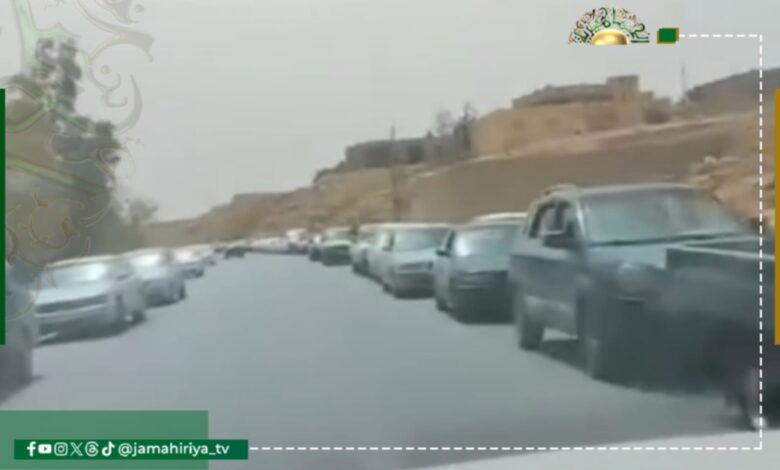 تداول نشطاء التواصل الاجتماعي، فيديو من داخل بني وليد يرصد اصطفاف السيارات لعدة كيلو مترات للحصول على اسطوانات غاز الطهي.