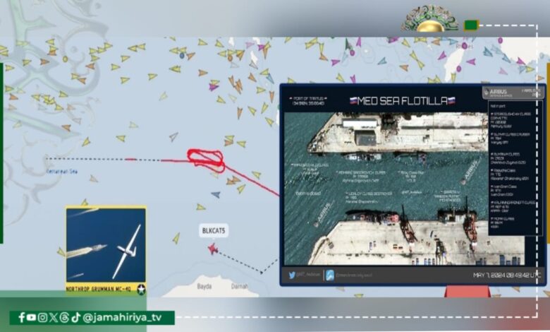 رصد الرادار الإيطالي، طائرة مُسيرة بدون طيار، تابعة للقوات البحرية الأمريكية، تُراقب تطورات الأوضاع في شرق ليبيا.