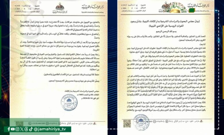 مجلس البحوث: الوجود الروسي على الأرض الليبية احتلال وواجب شرعا الجهاد ضده