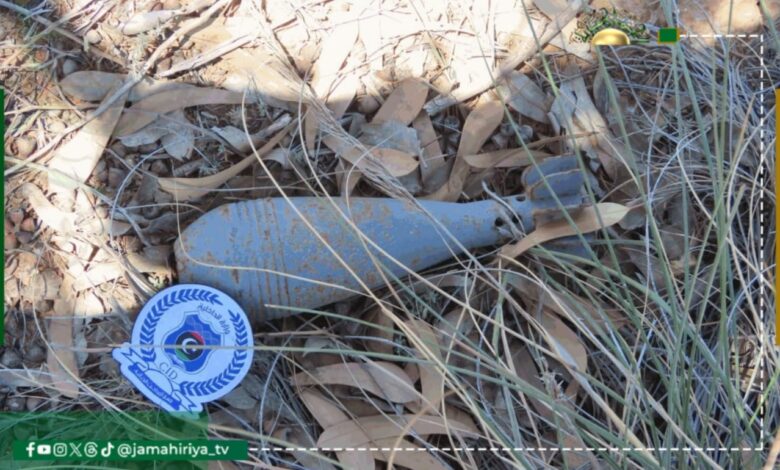 وتمكن فريق التفتيش الأمني وتفكيك المتفجرات بفرع جهاز المباحث الجنائية (الجبل الغربي) من تجميع مخلفات حرب متكونة من عدد (6) قذائف هاون بدون صمامات واتخذت الإجراءات اللازمة لنقلهم الى المكان المخصص إلى حين إتلافهم بالطرق الأمنة وفق المعايير المتبعة.