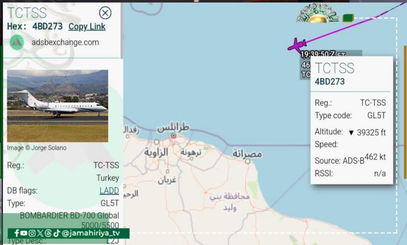 وأكدت مصادر مطلعة أن الطائرة التركية الخاصة: Bombardier Global 5000، رقم التسجيل: TC- TSS التي تشغلها شركة Genel Havacilik AS، هي نفس الطائرة التي غادر على متنها من الصين إلى تركيا.