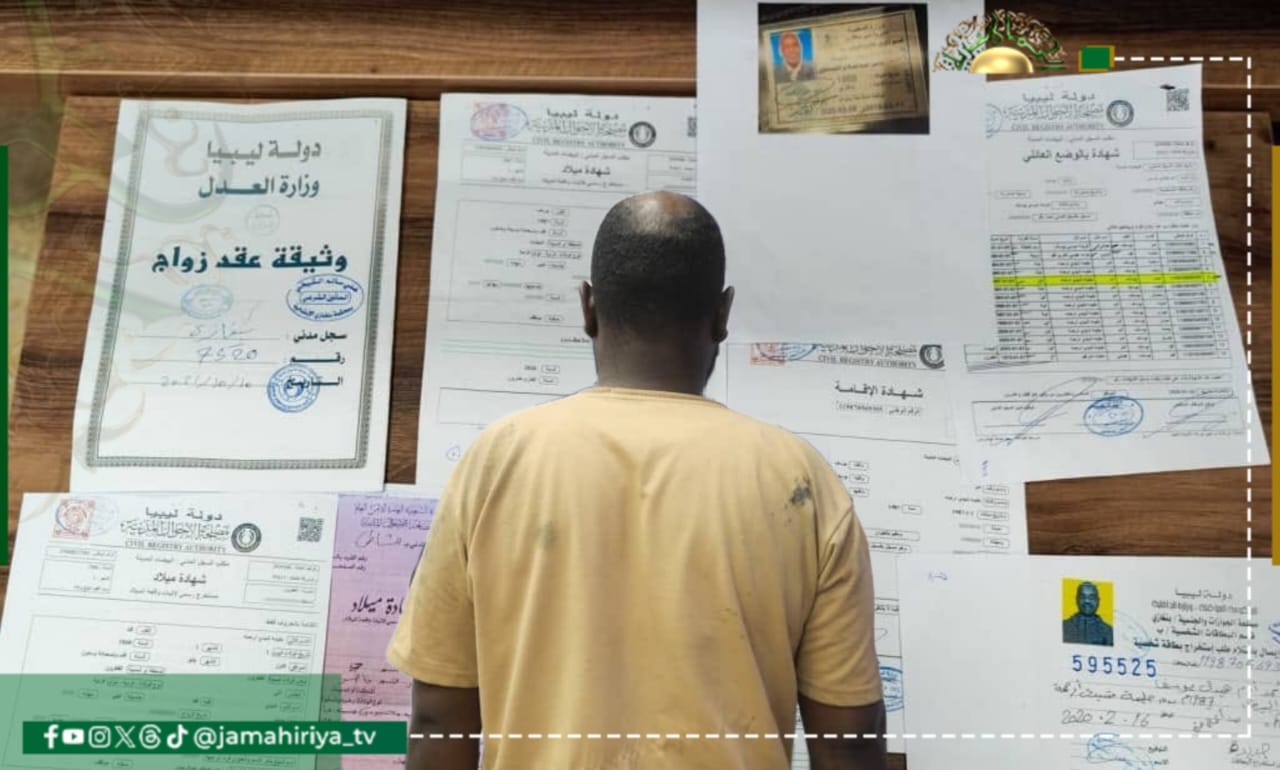أعلن جهاز البحث الجنائي، ضبط تشادي الجنسية زور أوراق ثبوتية ليبية بثلاث أسماء مختلفة تزوج وفق إحداها من سيدة ليبية وأنجب طفلة.