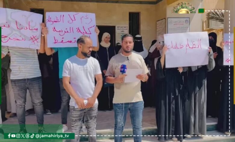 وقفة احتجاجية لطلاب كلية التربية صرمان ينددون فيها بأوضاعهم