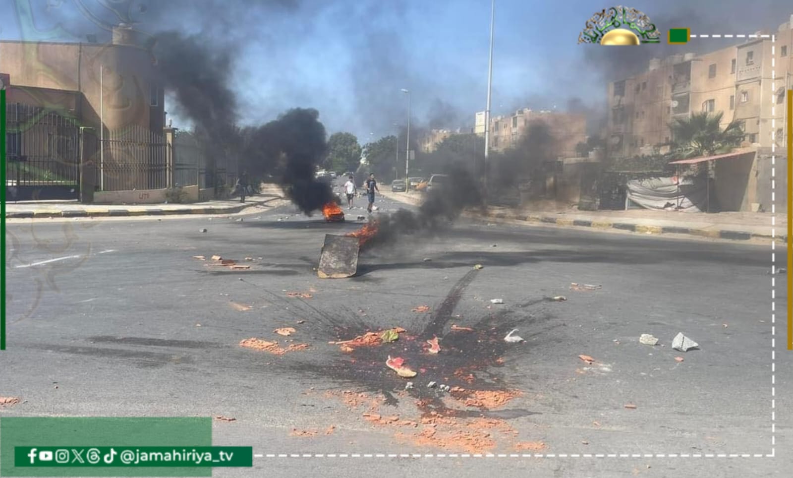 وسط فوضى.. محتجون يغلقون الطريق بالحي الاسلامي طرابلس ويشعلون الإطارات