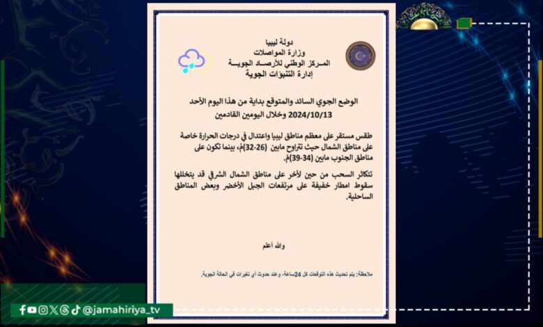 الأرصاد الجوية: طقس مستقر على معظم مناطق ليبيا واعتدال في درجات الحرارة