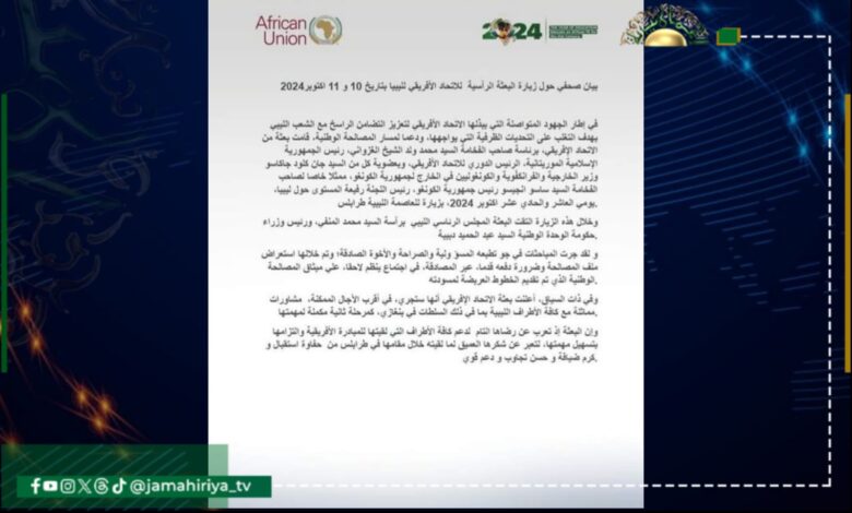 واختتم البيان، أن البعثة تعرب عن رضاها التام لدعم كافة الأطراف التي لقيتها للمبادرة الأفريقية والتزامها بتسهيل مهمتها، وشكرها العميق لما لقيته خلال مقامها في طرابلس من حفاوة استقبال.