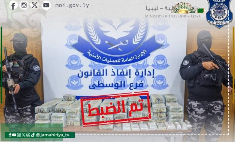 وسط فوضى، تمكنت دوريات فرع إدارة إنفاذ القانون المنطقة الوسطى بالإدارة العامة للعمليات الأمنية من الإطاحة بتشكيل عصابي متخصص في تهريب العملات الأجنبية والمعادن الثمينة خارج الأراضي الليبية .