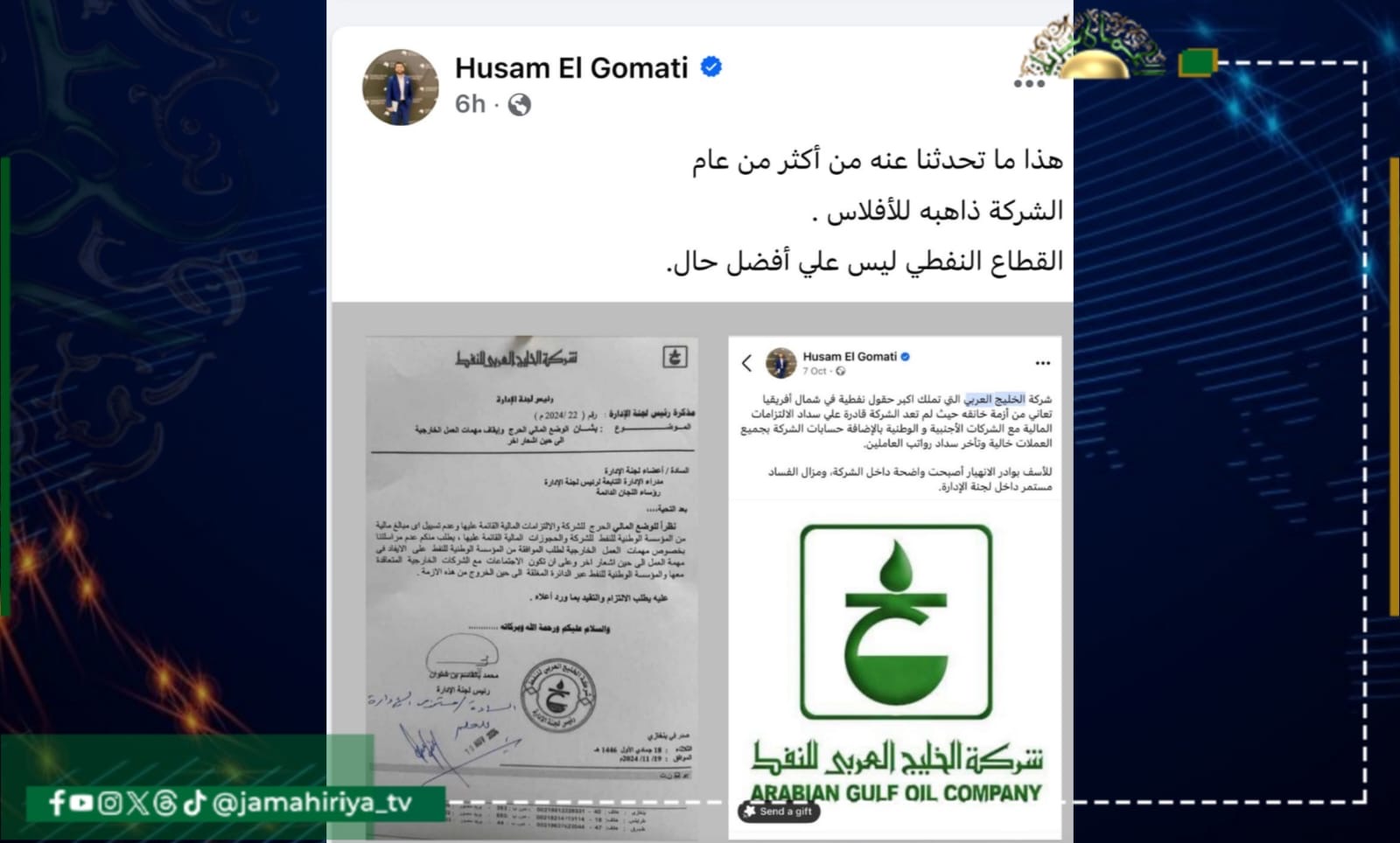 كشف الناشط الحقوقي حسام القماطي، اتجاه شركة الخليج العربي للنفط للإفلاس.