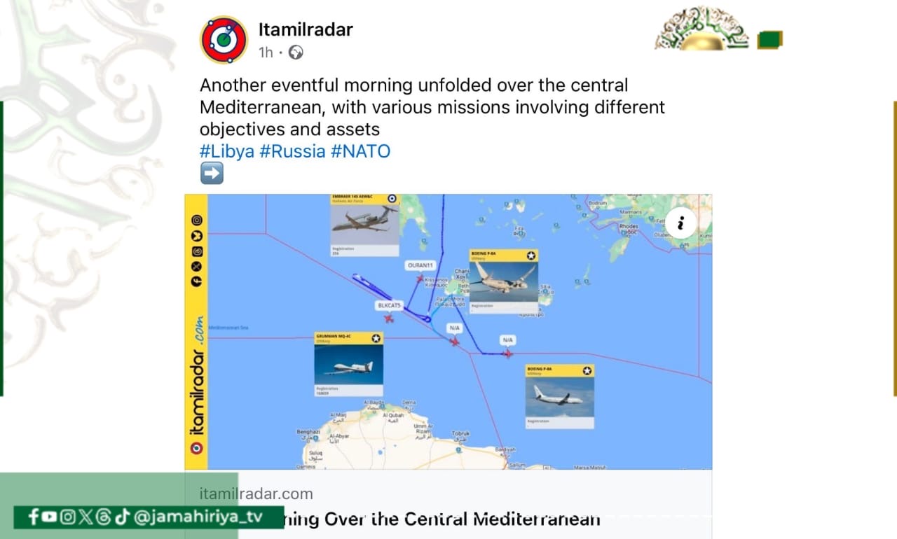 اليوم.. “إيتاميل رادار” الإيطالي تكشف قيام 4 مهام غير معلومة لطائرات أمريكية قبالة سواحل ليبيا