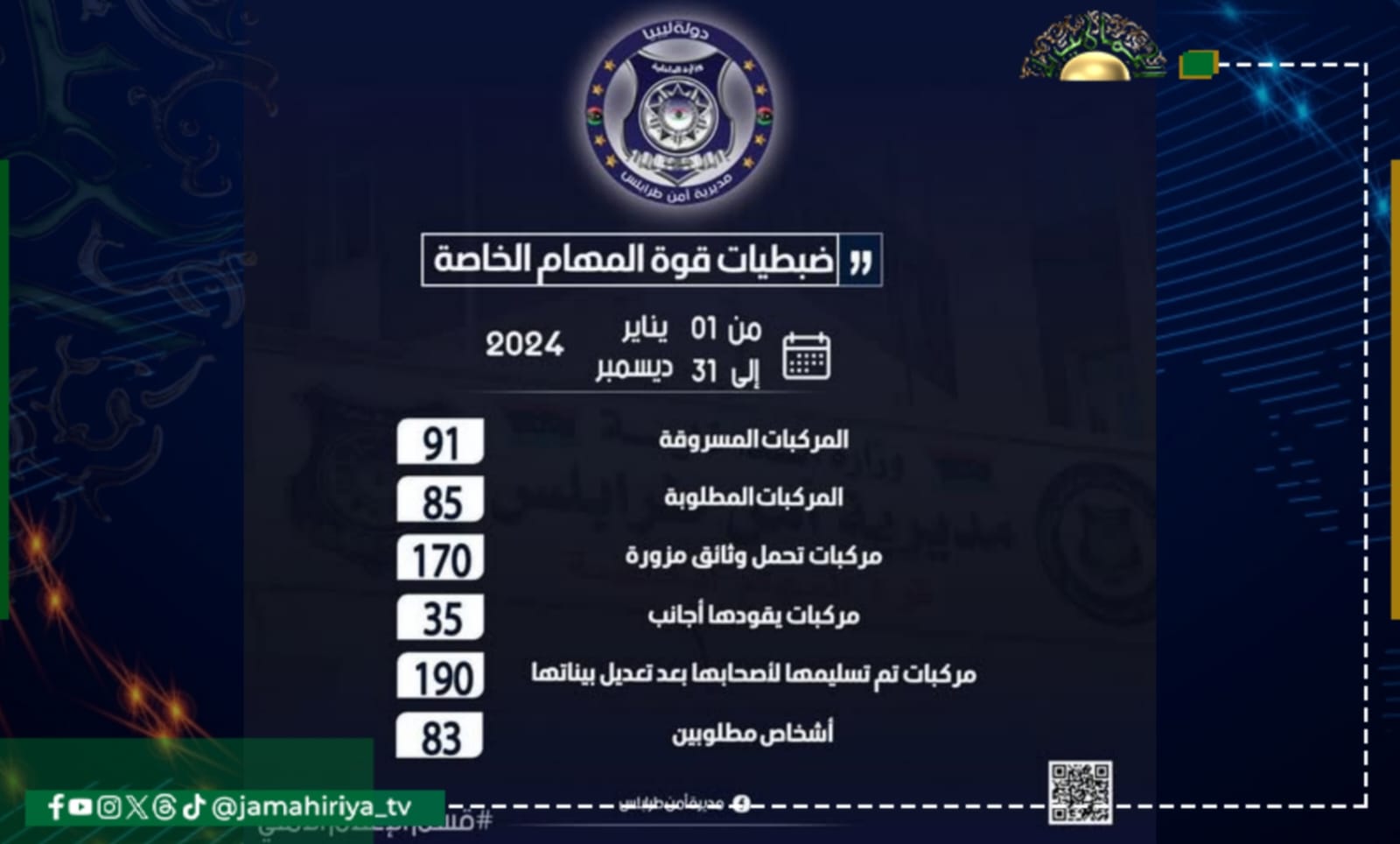 المهام الخاصة طرابلس تضبط 91 مركبة مسروقة و83 مطلوبا في 2024