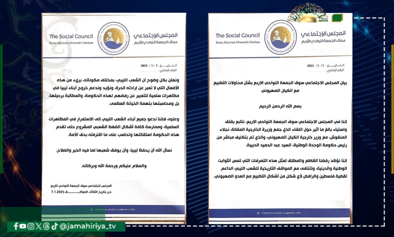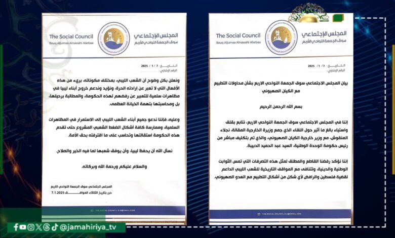 طالب المجلس الاجتماعي سوق الجمعة النواحي الاربع، حكومة التطبيع بتقديم استقالتها ومحاسبتها على ما اقترفته بحق الأمة.