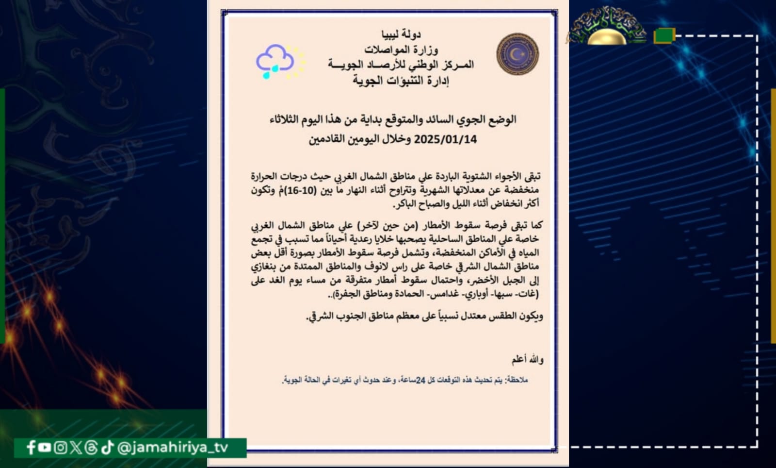 وجاء بيان الأحوال الجوية المتوقعة على ليبيا اليوم كالتالي: