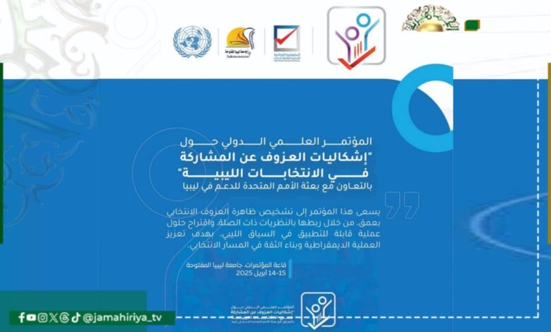 تنظم جامعة ليبيا المفتوحة والمفوضية الوطنية العليا للانتخابات، المؤتمر العلمي حول: “إشكاليات العزوف عن المشاركة في الانتخابات”، أيام 14،15 من ابريل 2025م..