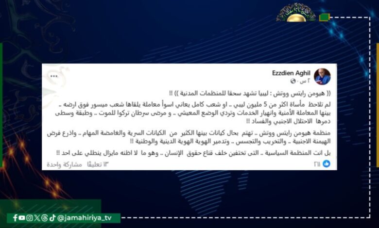 عز الدين عقيل: 5 مليون ليبي يعانون من أسوأ معاملة يلقاها شعب ميسور فوق أرضه