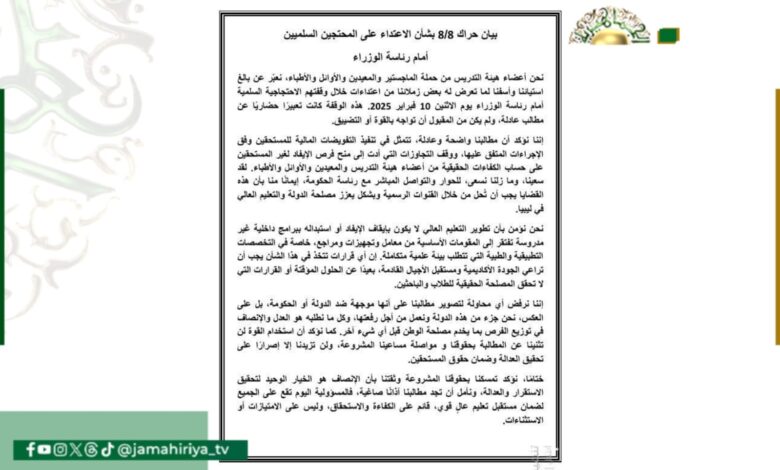 وتابع حراك 8/8 سعينا وما زلنا نسعى للحوار والتواصل المباشر مع رئاسة الحكومة، إيمانا منا بأن هذه القضايا يجب أن تُحل من خلال القنوات الرسمية وبشكل يعزز مصلحة الدولة والتعليم العالي