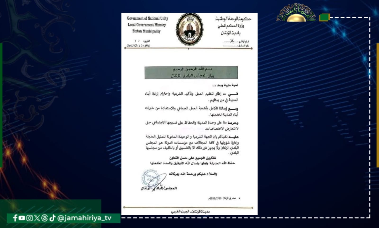 بلدي الزنتان: نحن الجهة الشرعية الوحيدة المخولة لتمثيل المدينة