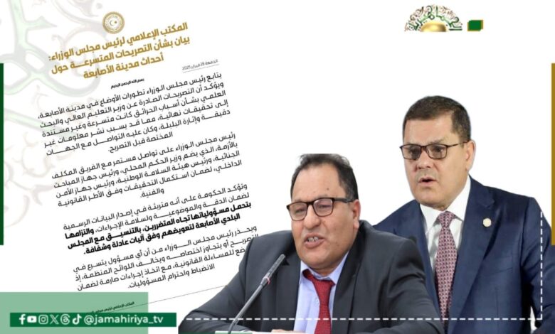 وجه رئيس حكومة التطبيع “عبد الحميد الدبيبة” انتقادات لوزير التعليم العالي لحكومته “عمران القيب” بشأن تصريحاته حول أسباب الحرائق ببلدية الأصابعة، واصفا إياها بالمتسرعة وغير المستندة إلى نتائج تحقيقات نهائية، مما قد يؤدي إلى نشر معلومات غير دقيقة وإثارة البلبلة.