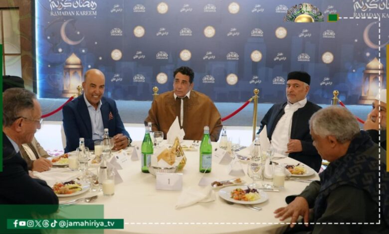 وجاء ذلك، في كلمة رئيس المجلس الرئاسي محمد المنفي خلال مأدبة الإفطار الرمضاني بحضور العديد من الشخصيات الرسمية والوزراء وسفراء البعثات الدبلوماسية في ليبيا.