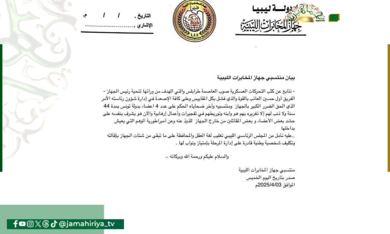 أكد منتسبو جهاز المخابرات الليبية متابعتهم للتحركات العسكرية التي شهدتها طرابلس مؤخرًا.