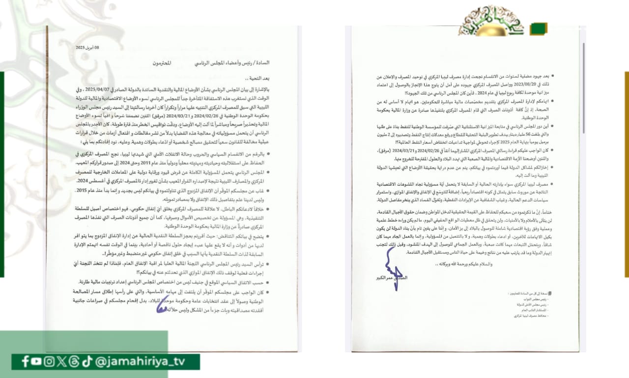وقال الكبير في رسالة له، إن الإنفاق المزدوج ليس بجديد، وإنما بدأ منذ عام 2015، وليس لدينا –أي المصرف المركزي- علم بتفاصيل ذلك الإنفاق ولا بمصادر تمويله.