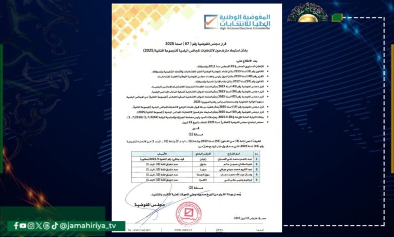 الرئيسية/عاجل/عاجل | المفوضية العليا للانتخابات تعلن استبعاد 5 مترشحين من انتخابات المجالس البلدية ضمن المجموعة الثانية في زليتن وسلوق وسوق الجمعة وسبها والكفرة لعدم انطباق الشروط عليهم عاجلمحلي عاجل | المفوضية العليا للانتخابات تعلن استبعاد 5 مترشحين من انتخابات المجالس البلدية ضمن المجموعة الثانية في زليتن وسلوق وسوق الجمعة وسبها والكفرة لعدم انطباق الشروط عليهم 24 أبريل، 2025 24 أبريل، 2025 فيسبوك تويتر بينتيريست واتساب تيلقرام ڤايبر مشاركة عبر البريد طباعة