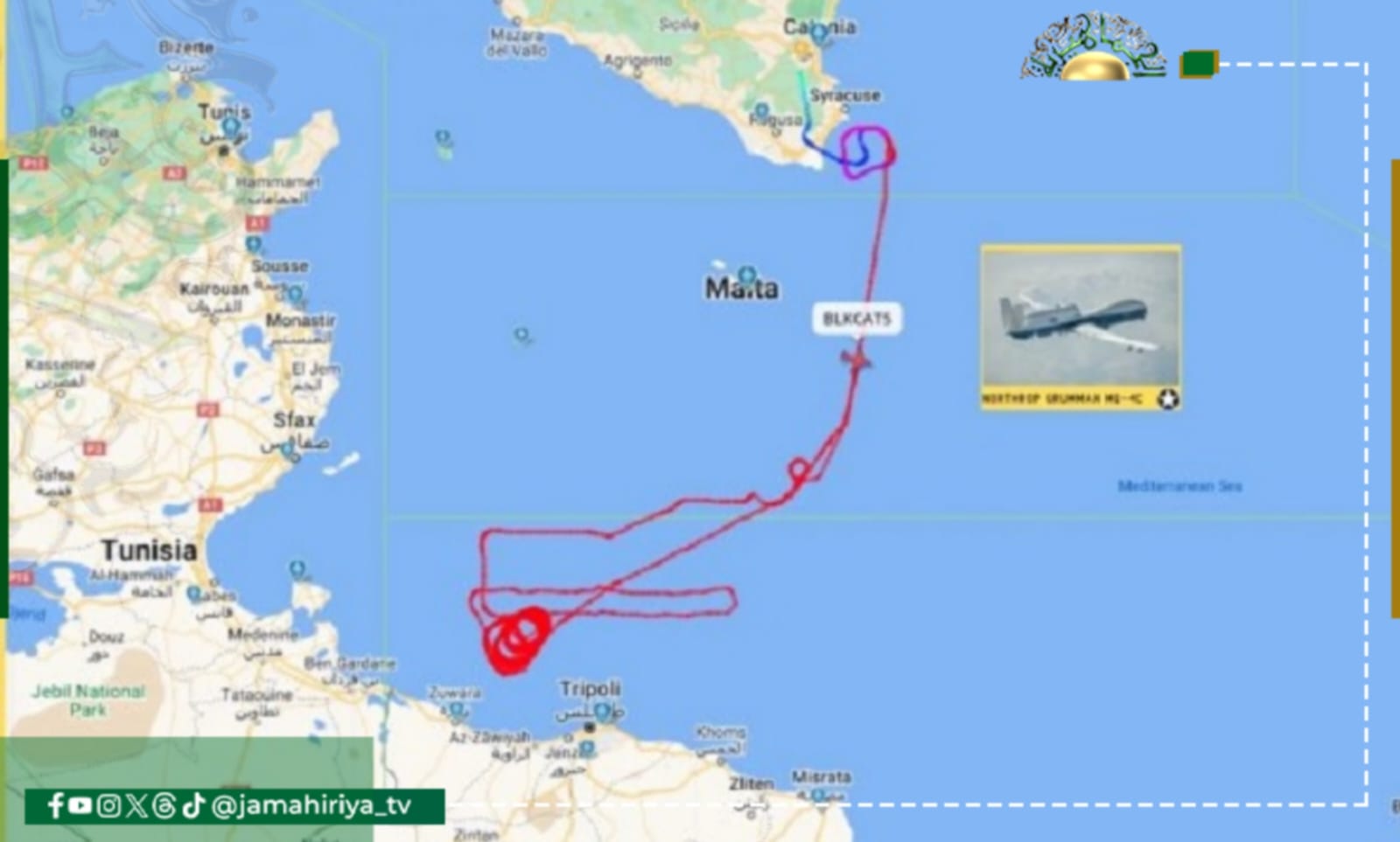 رصد طائرة استطلاع أمريكية تنفذ مهمة مراقبة فوق الساحل الليبي