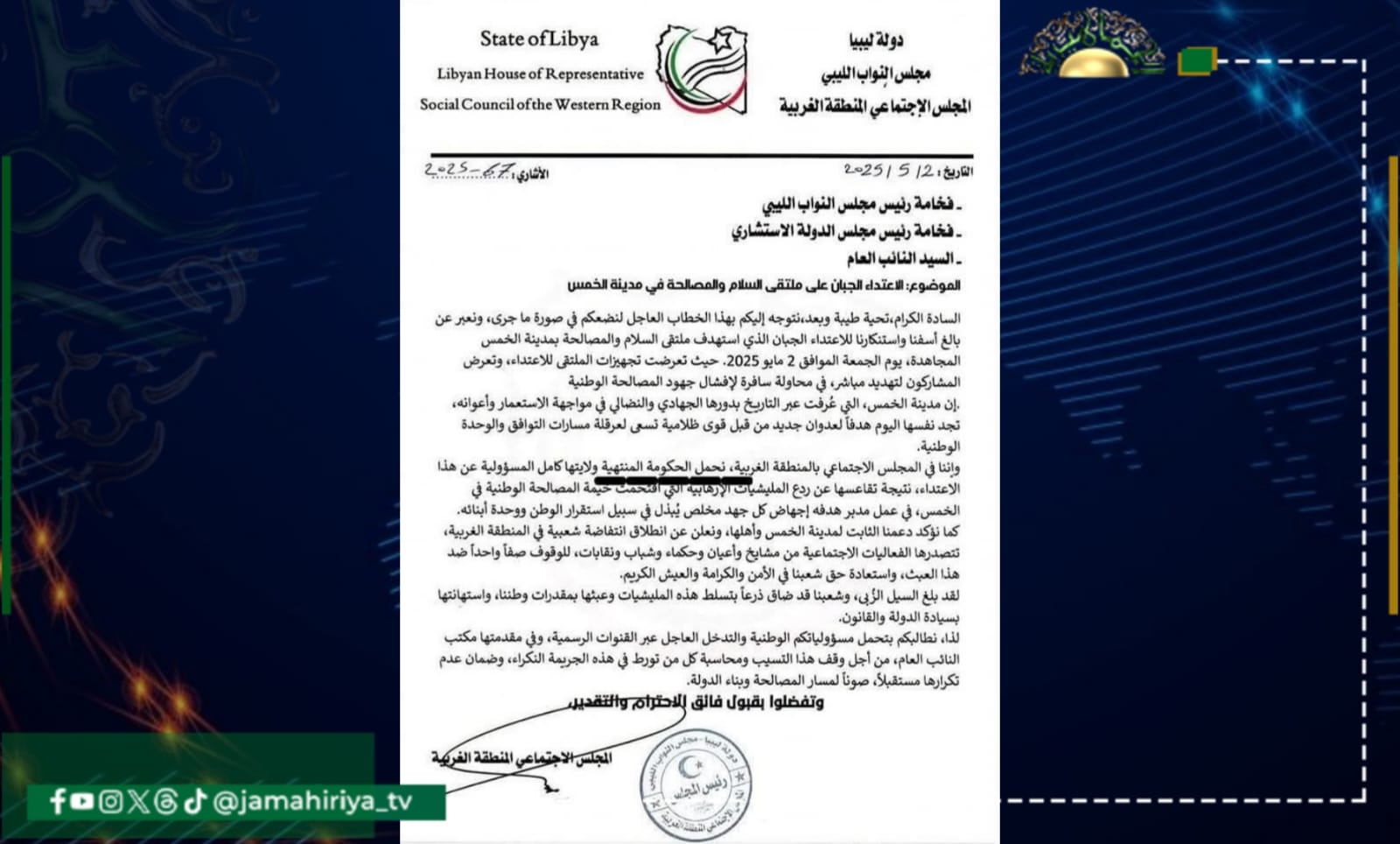 المجلس الاجتماعي المنطقة الغربية يدين الاعتداء على ملتقى السلام والمصالحة في الخمس