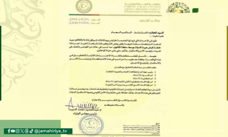 تقدم رئيس حكومة التطبيع عبد الحميد الدبيبة ببلاغ للنائب العام للتحقيق مع عدد من قادة المليشيات بتهم التسبب في حالة من الفوضى والعنف في طرابلس.