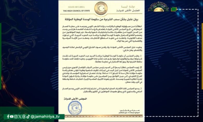 ودعا البيان كافة الأطراف المحلية والدولية إلى احترام إرادة الشعب الليبي ودعم المسار السلمي والدستوري الذي يحقق طموحات المواطنين في التغيير والاستقرار.