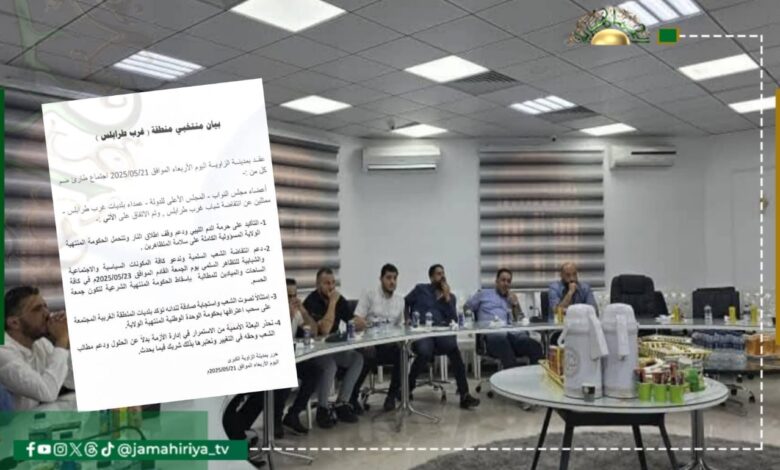 وشدد البيان، على سحب اعتراف بلديات المنطقة الغربية المجتمعة، بحكومة الوحدة المنتهية الولاية، امتثالاً لصوت الشعب واستجابة صادقة لندائه.