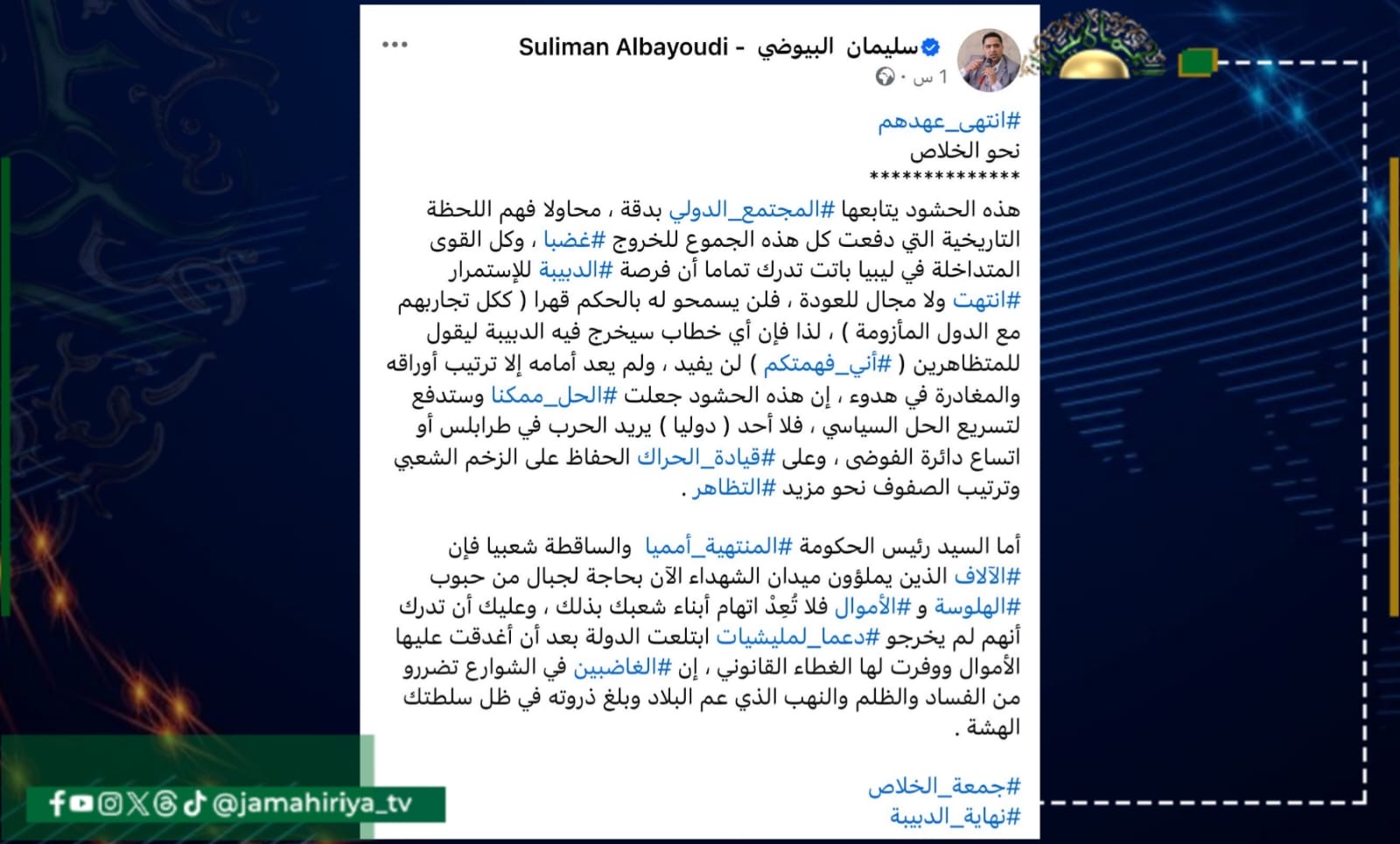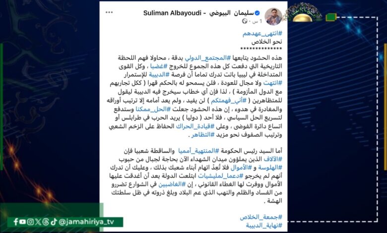 “البيوضي” لـ “الدبيبة”: حكومتك مُنتهية أمميًا وساقطة شعبيًا
