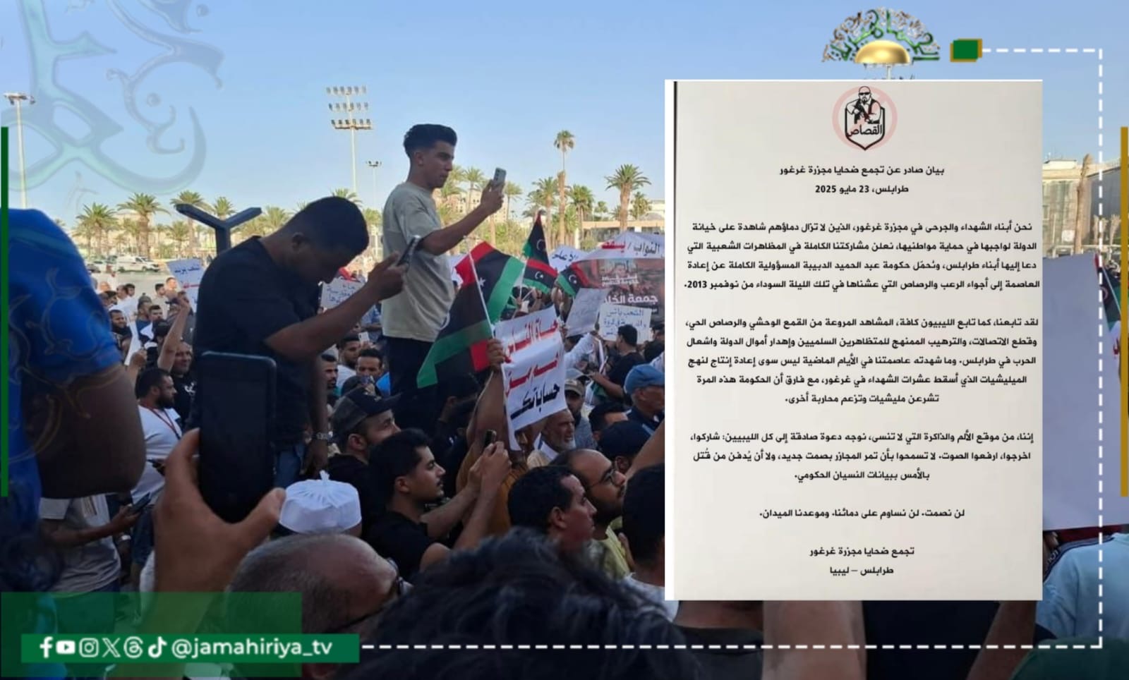 أعلن تجمع ضحايا مجزرة غرغور مشاركته في المظاهرات التي دعا إليها أبناء طرابلس لإسقاط الدبيبة.