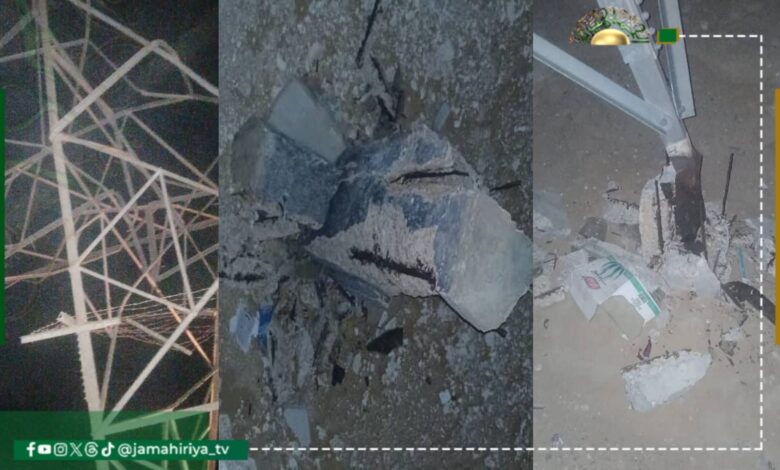 وأوضحت البلدية، في بيان أنهم برجين في منطقة كيلو 2 وثلاثة أبراج في طريق زله ودان منطقة اعقيب على مسافة 60 كيلو متر مما تسبب في انقطاع التيار الكهربائي.