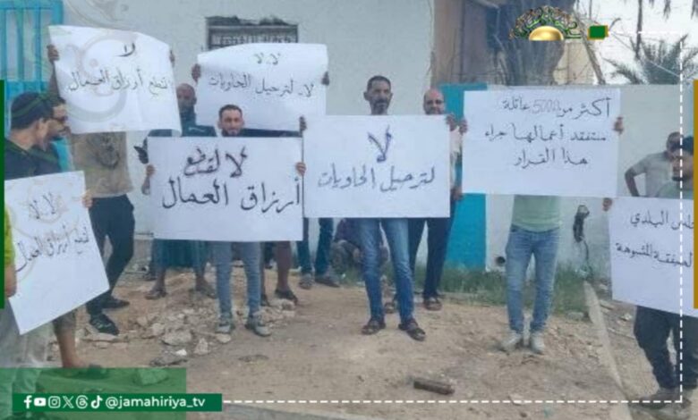 عمال ميناء الخمس يحتجون: “لا لقطع أرزاق العمال”