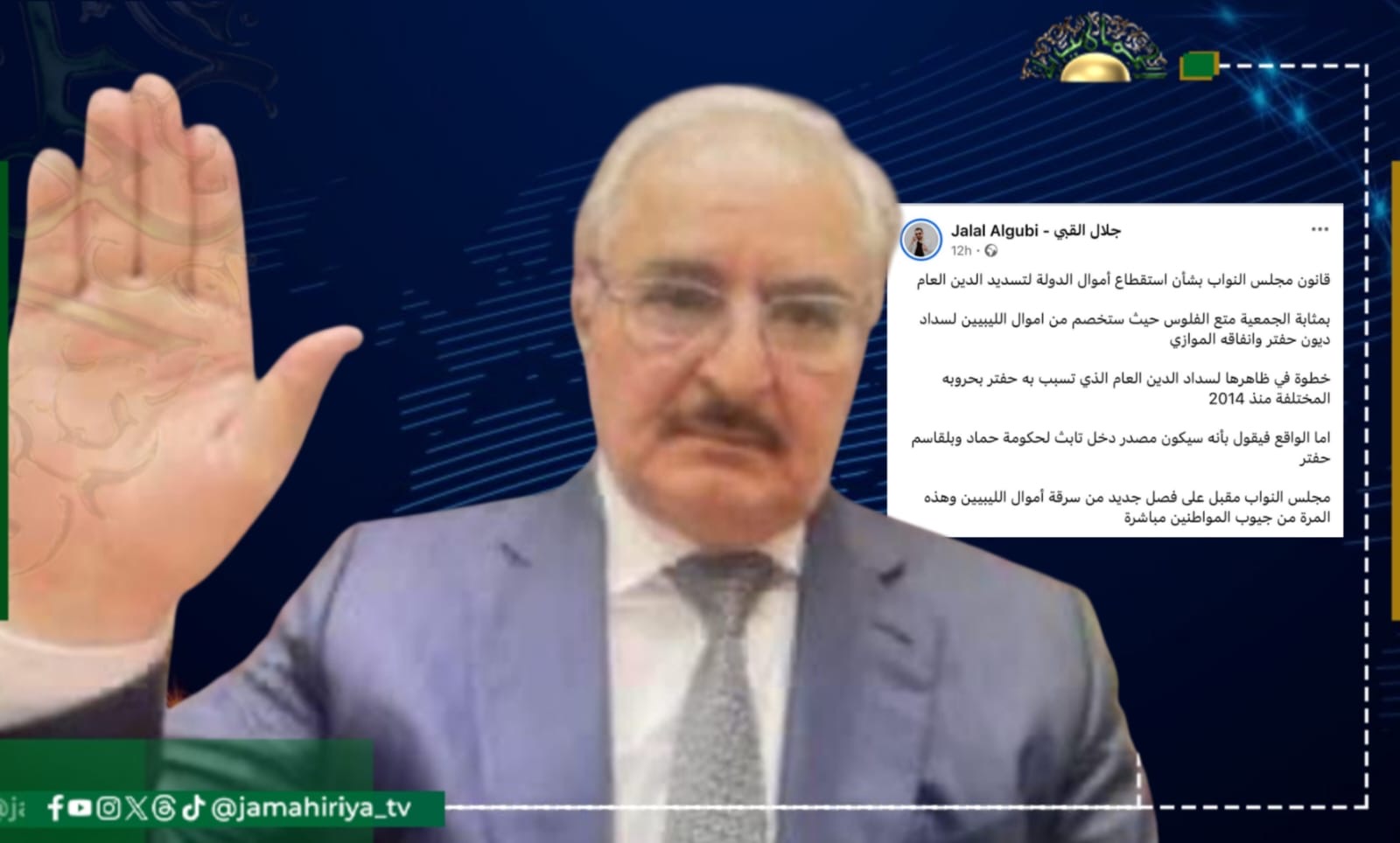 وأضاف أن ” ما يروج له مجلس النواب باعتباره معالجة للدين العام، يخفي حقيقة أن هذا الدين سببه حروب حفتر العبثية منذ 2014″، لافتاً إلى أن البرلمان مقبل على فصل جديد من نهب المال العام، لكن هذه المرة عبر اقتطاعه مباشرة من جيوب المواطنين