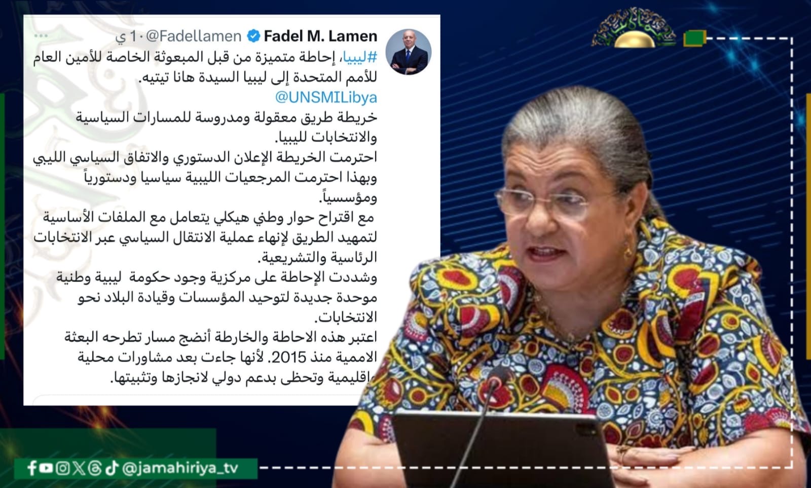 أشاد المترشح لرئاسة الحكومة فضيل الأمين بإحاطة المبعوثة الخاصة للأمين العام للأمم المتحدة إلى ليبيا، السيدة هانا تيتيه، أمام مجلس الأمن، واصفًا خارطة الطريق التي قدمتها بأنها “معقولة ومدروسة” وتشكل “أنضج مسار تطرحه البعثة الأممية منذ عام 2015″