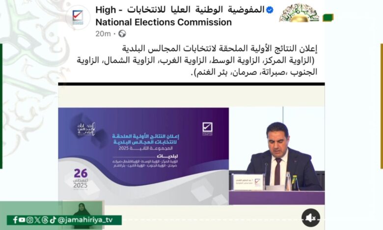 عاجل | مفوضية الانتخابات تعتمد النتائج الأولية الملحقة بالمجالس البلدية المجموعة الثانية لبلديات الزاوية المركز والزاوية الوسط والزاوية الغرب والزاوية الشمال والزاوية الجنوب وصبراتة وصرمان وبئر الغنم