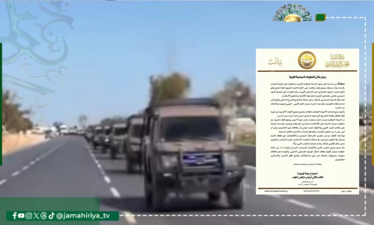 أكد النائب الثاني لرئيس مجلس النواب، مصباح دومة، أن استمرار الوجود العسكري الأجنبي على الأراضي الليبية يمثل تهديدًا مباشرًا لمسار الاستقرار، رغم الجهود الجارية لإنهاء الانقسام.