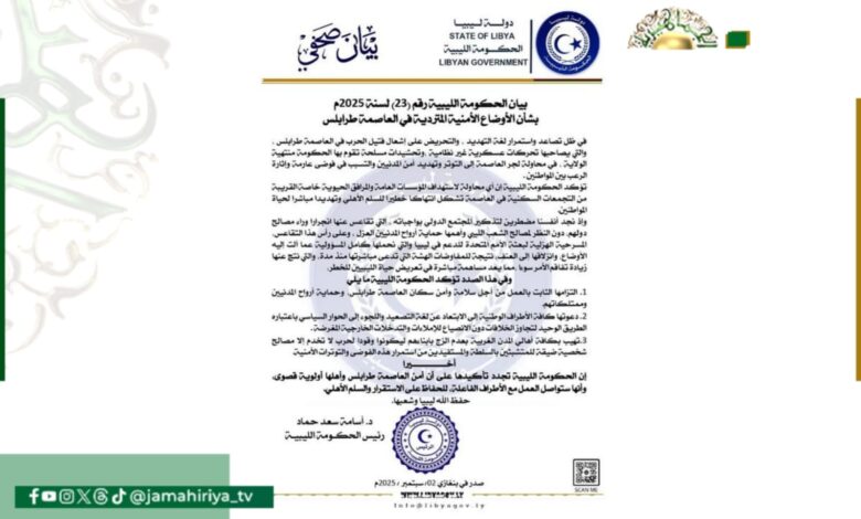 حكومة حماد تحذر من استهداف المؤسسات العامة والمرافق الحيوية بطرابلس