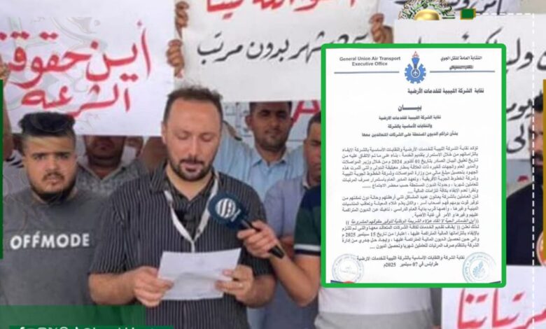 أعربت نقابة الشركة الليبية للخدمات الأرضية والنقابات الأساسية بالشركة عن استيائها من استمرار تراكم الديون المستحقة على الشركات المتعاقدة معها، رغم التزام العاملين بتقديم الخدمات وفق الاتفاقات السابقة.